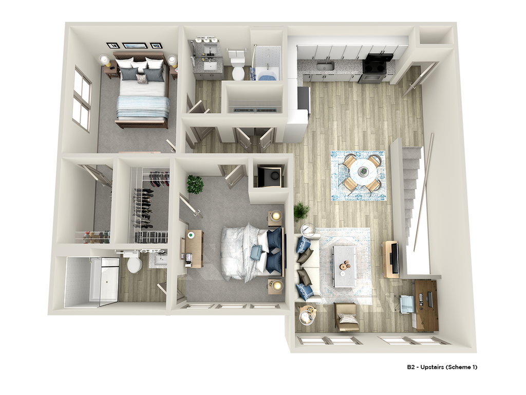 Modelo de apartamento: B1GDesde $1,4752 Dormitorios, 2 Baños, 1092 sq ftDisponible Ahora![]()