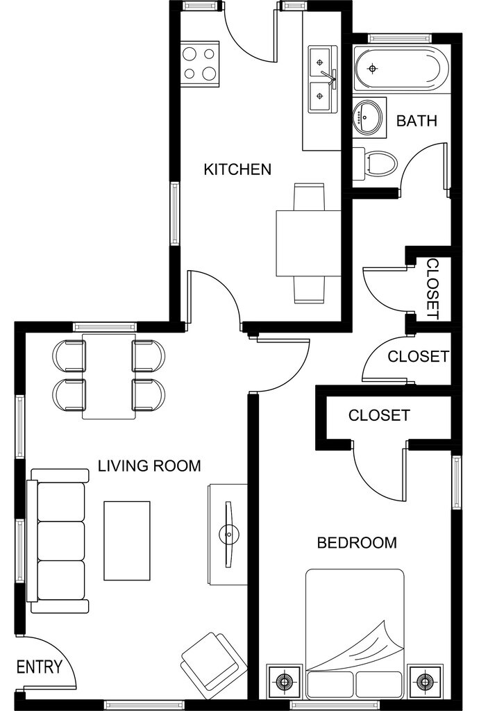 1 Dormitorio, 1 Baño, 690 pies²Galería del Modelo