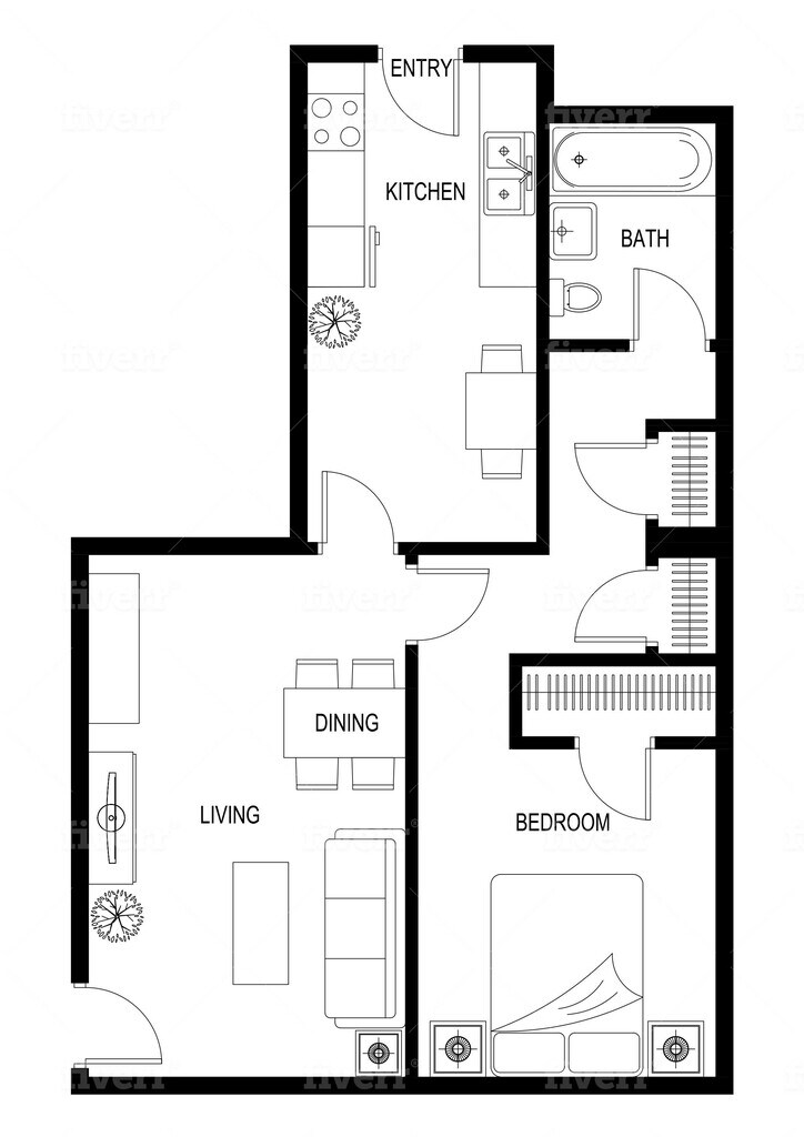 Estudio, 1 Baño, 350 pies²Disponible AhoraGalería del Modelo