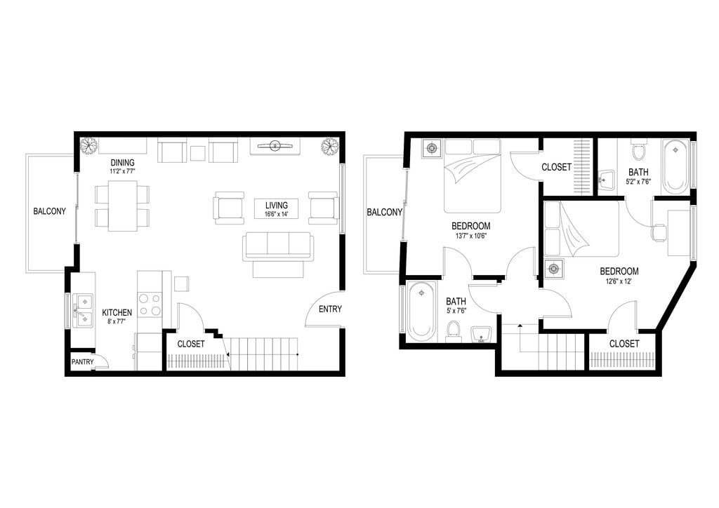 2 Dormitorios, 2 Baños, 800 pies²Galería del Modelo