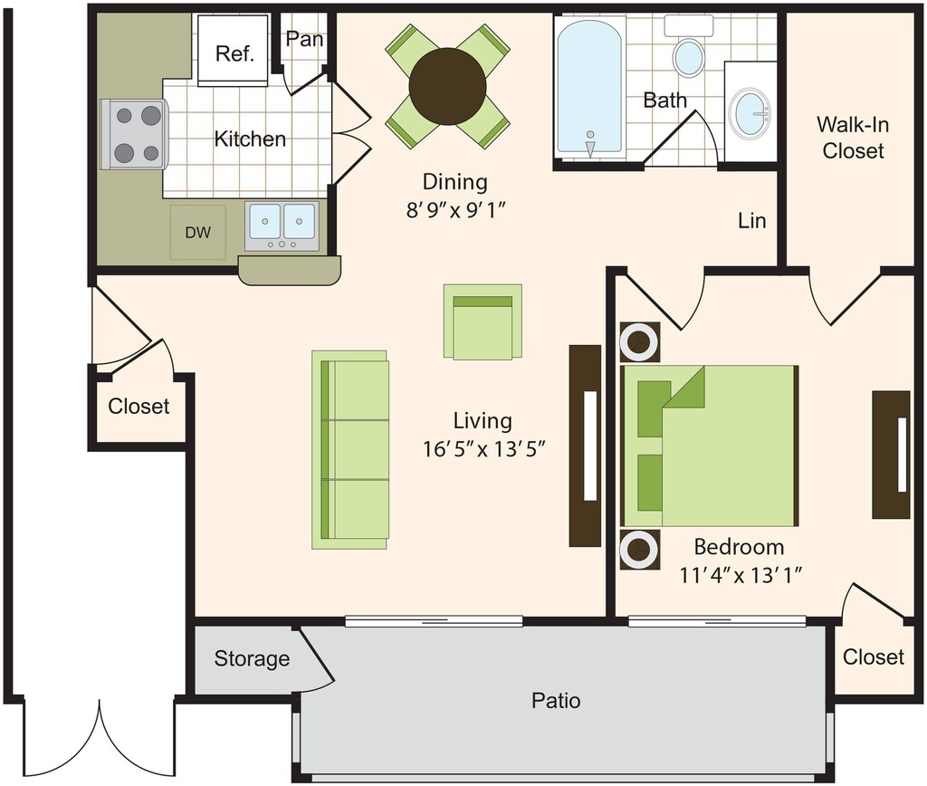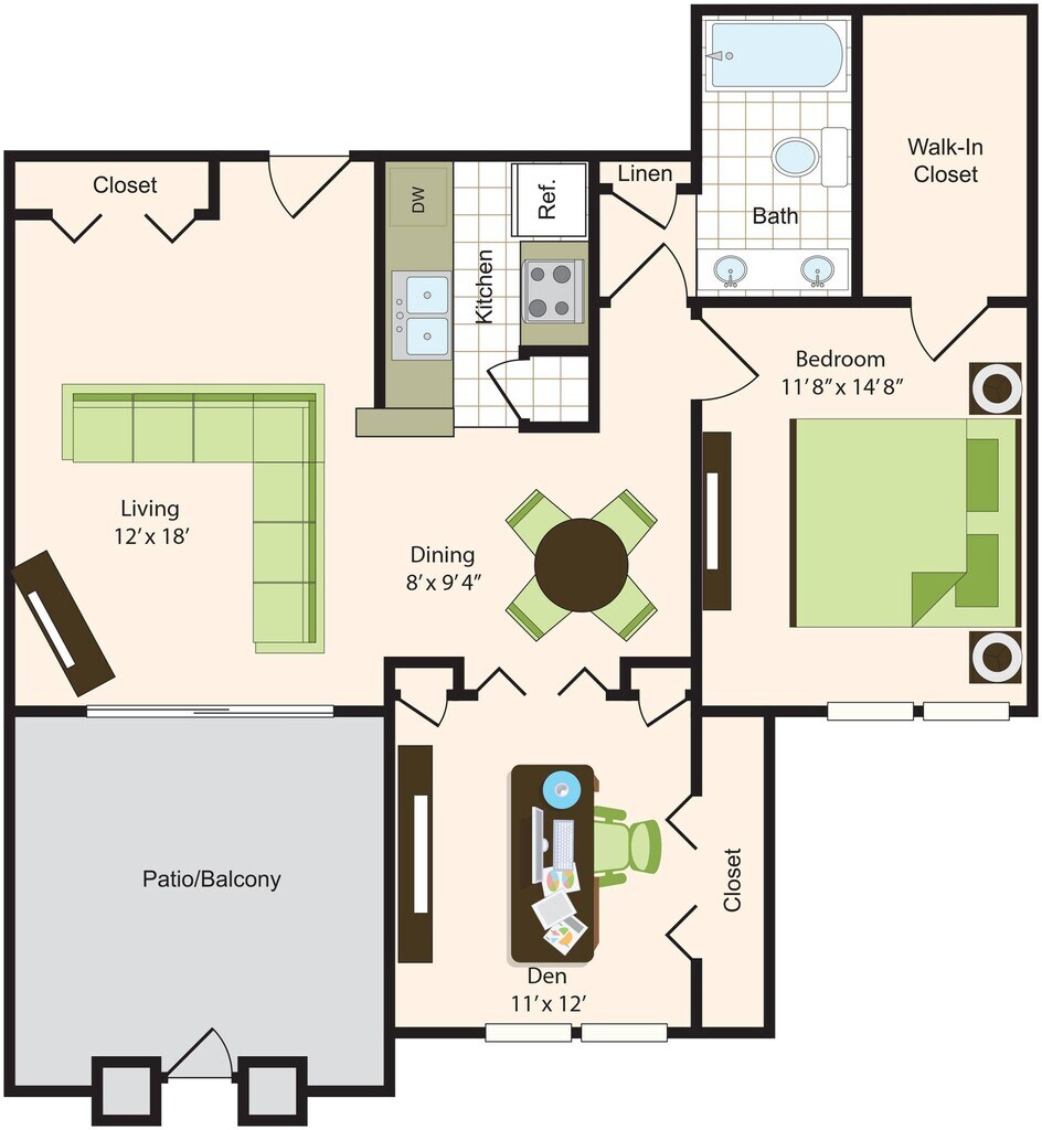 Unidad de apartamento: 7Modelo de apartamento: A5Desde $1,0861 Dormitorio, 1 Baño, 666 sq ftDisponible ProntoPlano: A4