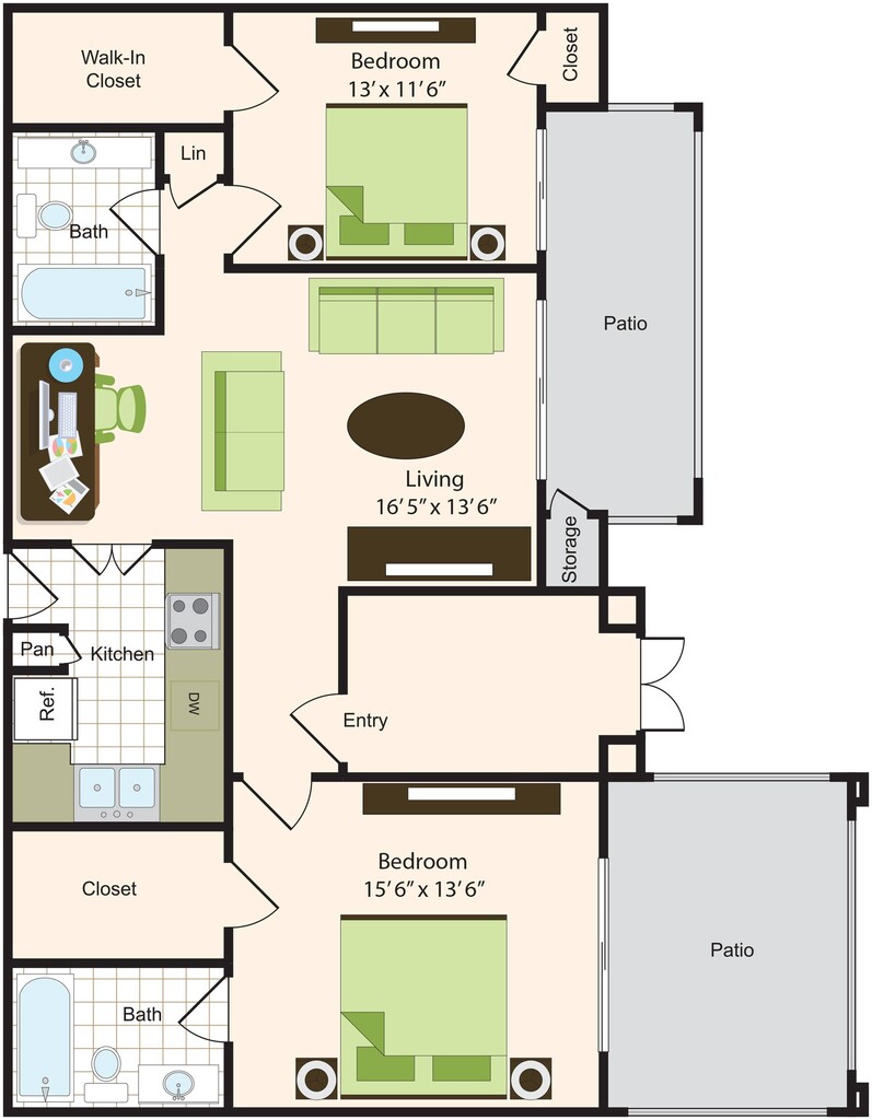 1 Dormitorio, 1 Baño, 680 pies²Disponible AhoraGalería del Modelo