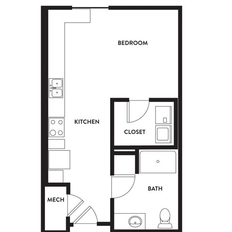 Estudio, 1 Baño, 476 pies²Disponible AhoraGalería del Modelo