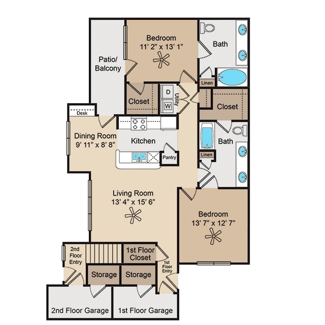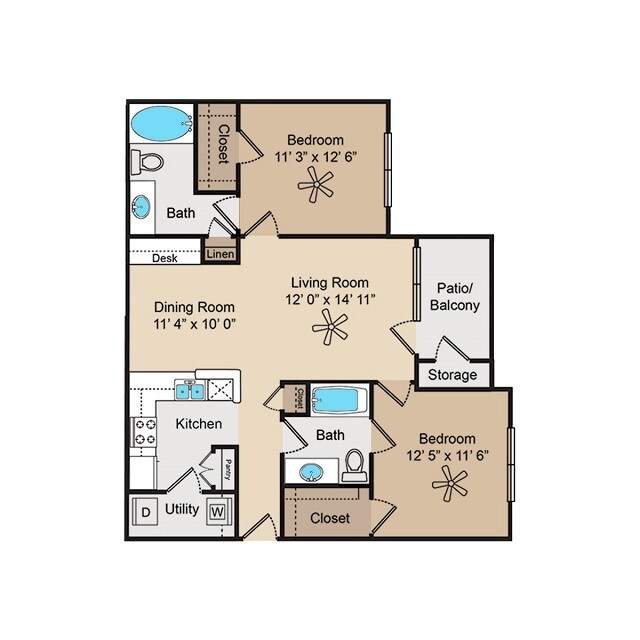 2 Dormitorios, 2 Baños, 1229-1274 pies²Disponible AhoraEl más grandeEsta opción tiene las unidades más grandes para este modeloGalería del Modelo