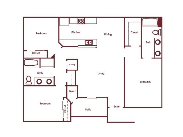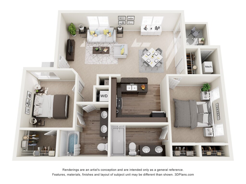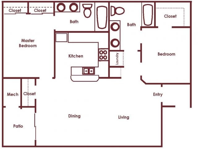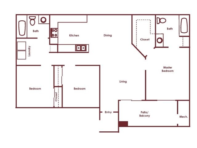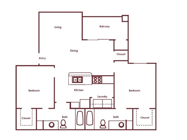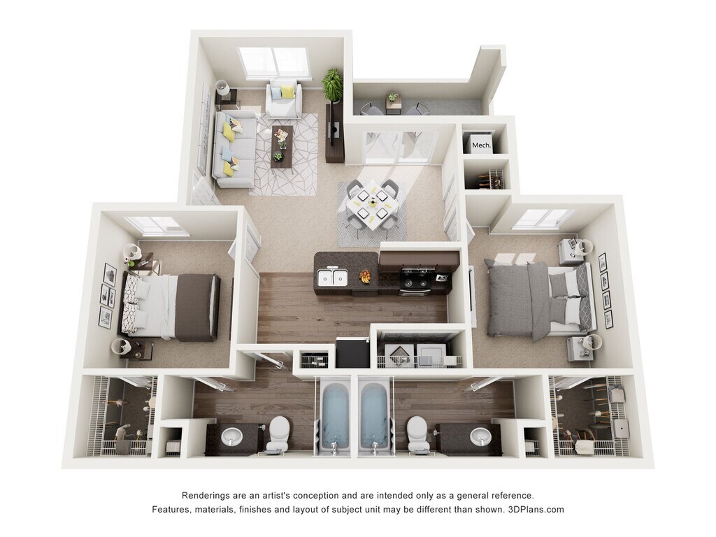 Modelo de apartamento: C 2x2Desde $1,5462 Dormitorios, 2 Baños, 1038 sq ftDisponible Ahora![]()