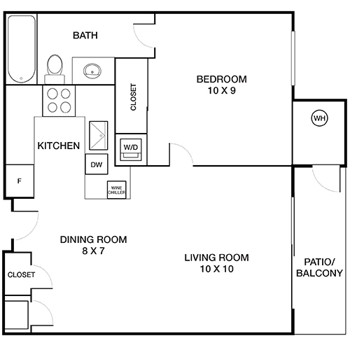 Modelo de apartamento: The SunsetLlame para Precios1 Dormitorio, 1 Baño, 480 sq ftNo Disponible![]()