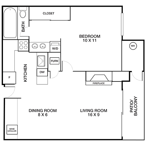 Modelo de apartamento: The Fountain$2,6501 Dormitorio, 1 Baño, 620 sq ftDisponible Ahora![]()