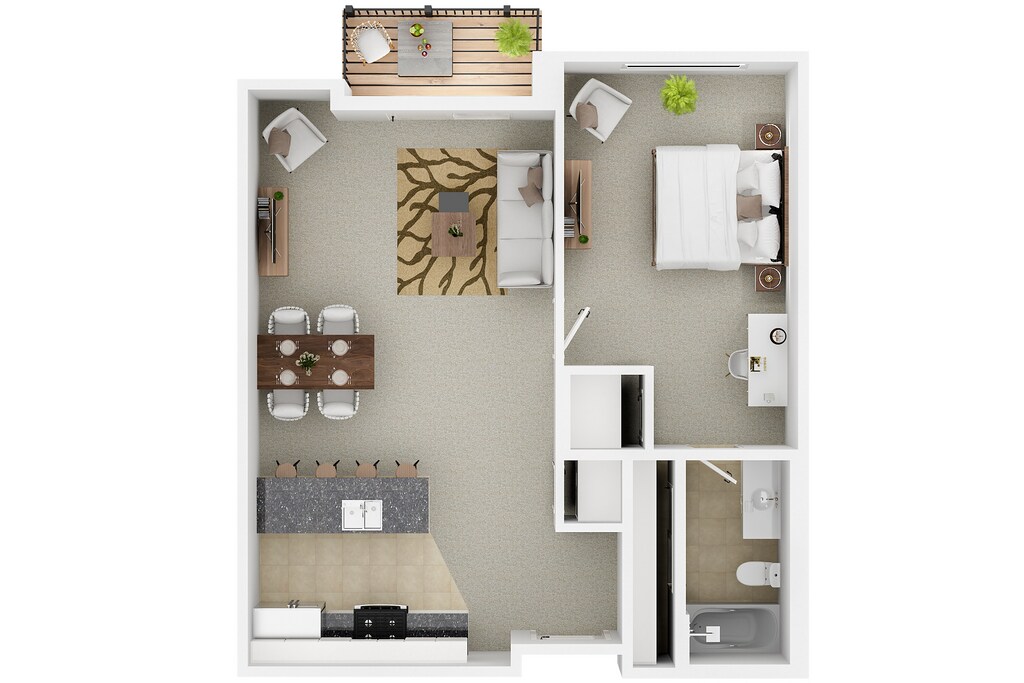 1 Dormitorio, 1 Baño, 750 pies²Galería del Modelo