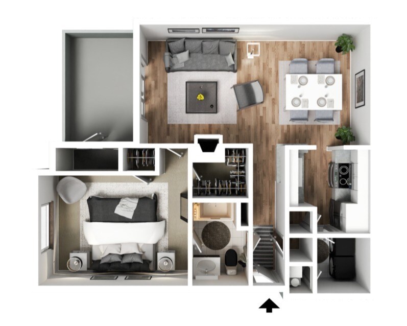 1 Dormitorio, 1 Baño, 815 pies²Disponible AhoraGalería del Modelo