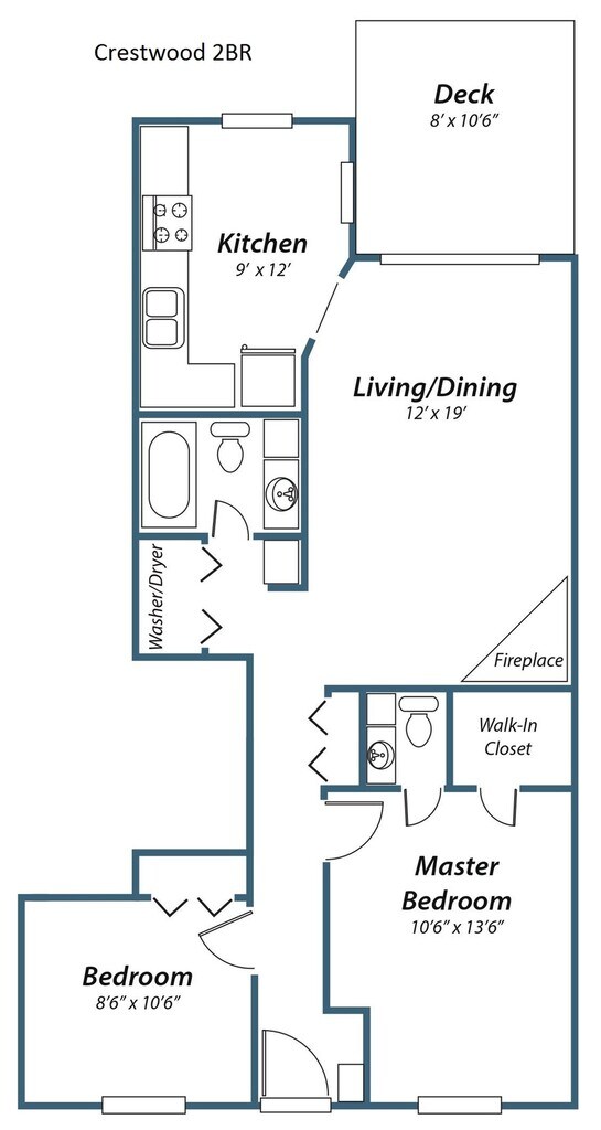 2 Dormitorios, 1 Baño, 850 pies²Galería del Modelo