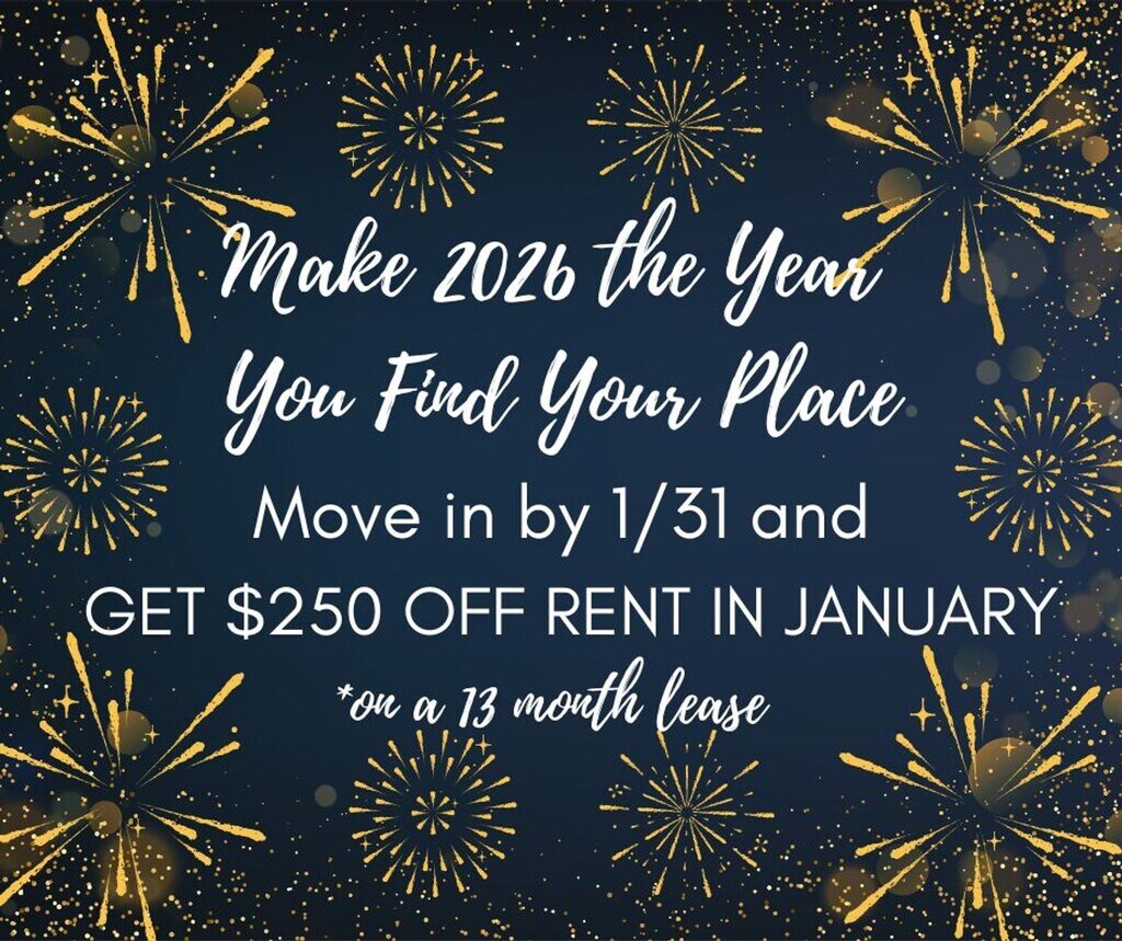 Move in by 1/31 and GET $250 OFF FIRST MONTH'S RENT!~~Move in by 1/31 and GET $250 OFF FIRST MONTH'S RENT!