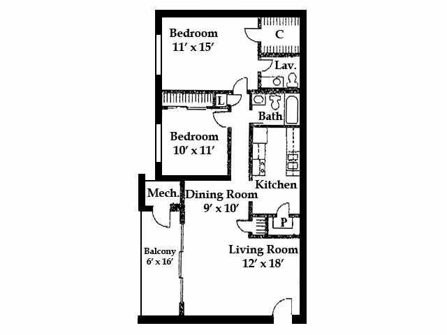 Modelo de apartamento: 212 Dormitorios, 1 Baño, 750 sq ftNo Disponible![]()