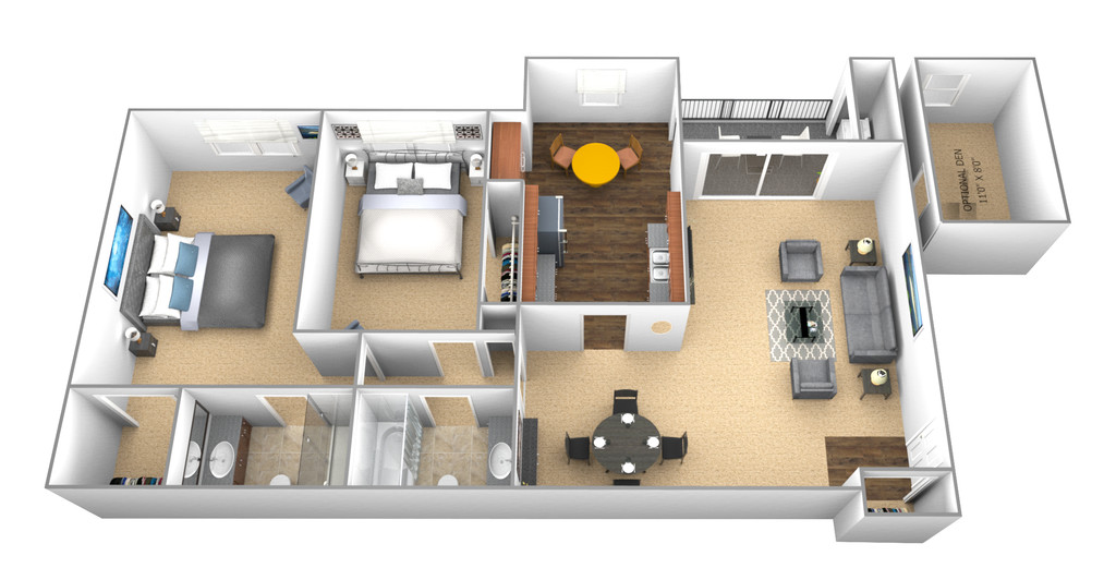 2 Dormitorios, 2 Baños, 1100-1200 pies²Disponible AhoraGalería del Modelo