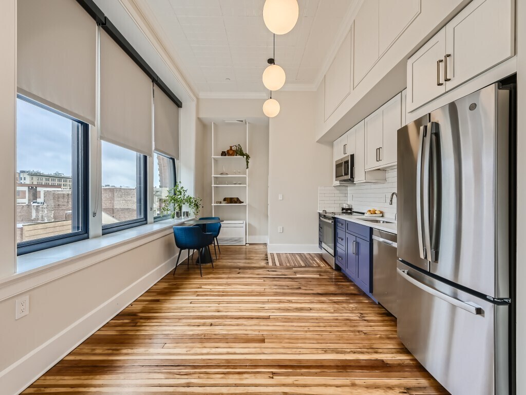 ONE UNIT AVAILABLE - FULLY FURNISHED (if needed). Unlike any other apartments in Baltimore! Newly renovated Open Live/Work lofts. If you are looking for expansive space – and something historically special – you owe it to yourself to visit the Crook Horner Lofts before you rent anywhere else. Located at the corner of North Howard and West Saratoga, the Crook Horner Lofts will bring 15 units of expansive open loft apartments to downtown Baltimore along with two lively street-level spaces. Built in 1890 for Crook Horner & Co. Plumbing Supplies, and later housing Pollack's Furniture and Rugs for many decades, 303 North Howard features soaring 14-foot ceilings, dramatic arched windows, and open floor plans. New York City-based B&B Urban worked with Baltimore-based the Civic Group to renovate these historic properties, honoring the buildings' past while creating dramatic and unusually spacious live and work loft apartments. OPEN HOUSE every Sunday 12pm-2pm.