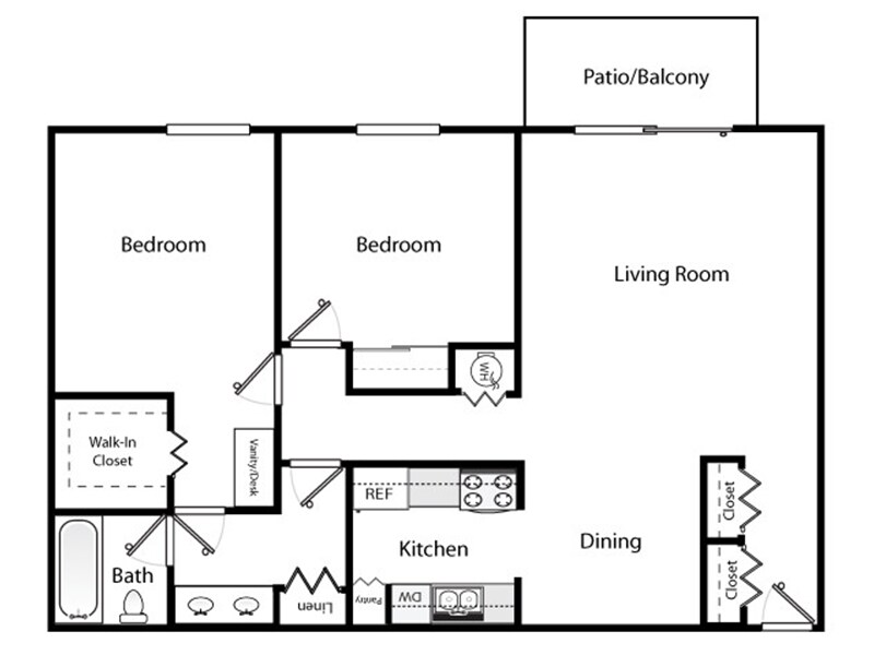 2 Dormitorios, 1 Baño, 963 pies²Disponible AhoraGalería del Modelo