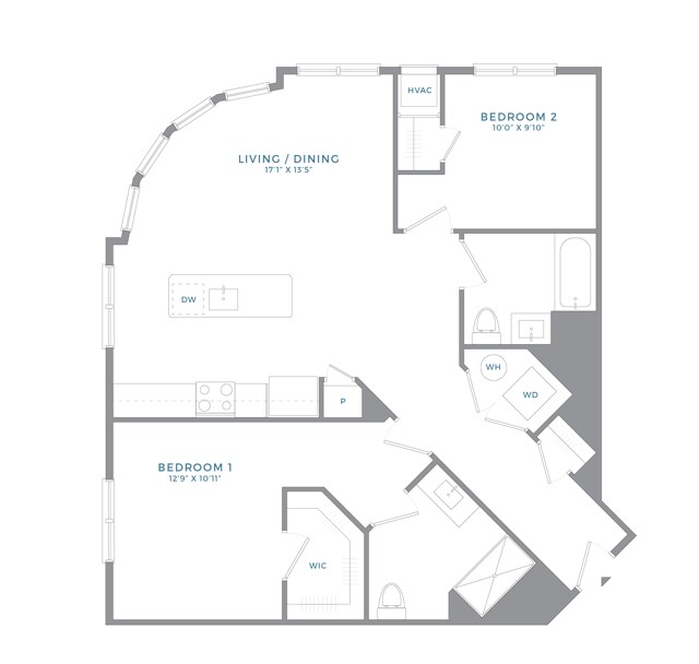 Modelo de apartamento: A17Desde $2,2271 Dormitorio, 1 Baño, 820 sq ftDisponible Ahora![]()