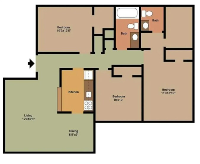 2 bed 2 bath- Classic - Plano 1 3 Dormitorios