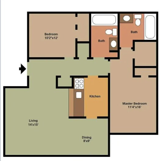 Modelo de apartamento: 2 bed 1 1/2 bath - ClassicLlame para Precios2 Dormitorios, 1.5 Baños, 875 sq ftNo Disponible![]()