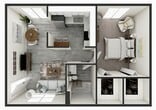 1 Dormitorio, 1 Baño, 725 pies²Disponible AhoraGalería del Modelo