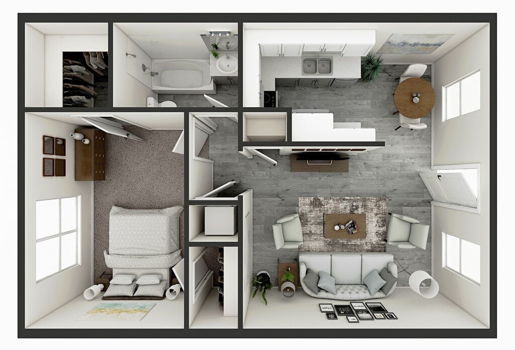 1 Dormitorio, 1 Baño, 685 pies²Disponible AhoraGalería del Modelo