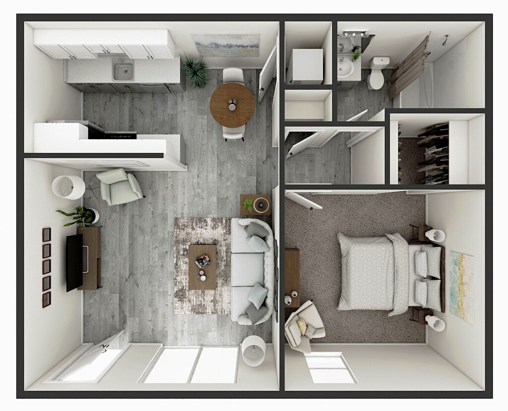 1 Dormitorio, 1 Baño, 750 pies²Disponible AhoraGalería del Modelo