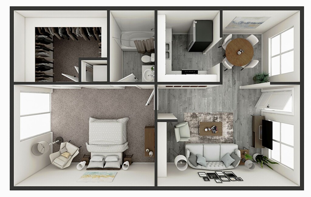 1 Dormitorio, 1 Baño, 756 pies²Disponible AhoraGalería del Modelo