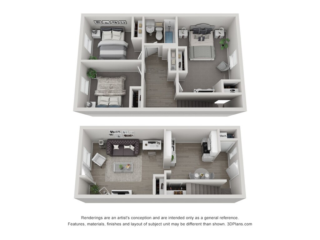 Modelo de apartamento: 3 X 1 Standard - Call For Availability$1,3003 Dormitorios, 1 Baño, 970 sq ftDisponible Ahora![]()