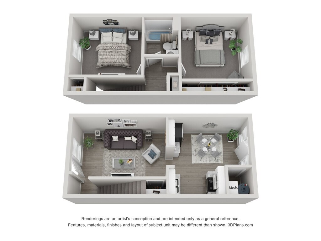 2 Dormitorios, 1 Baño, 750 pies²Disponible AhoraGalería del Modelo