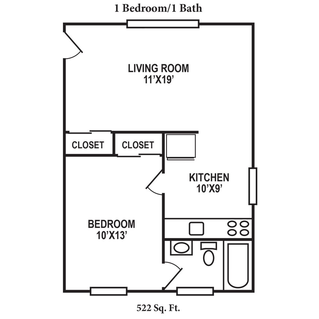 1 Bedroom 1 Bath 522SqFt - Plano 2 1 Bedroom 1 Bath 624Sqft