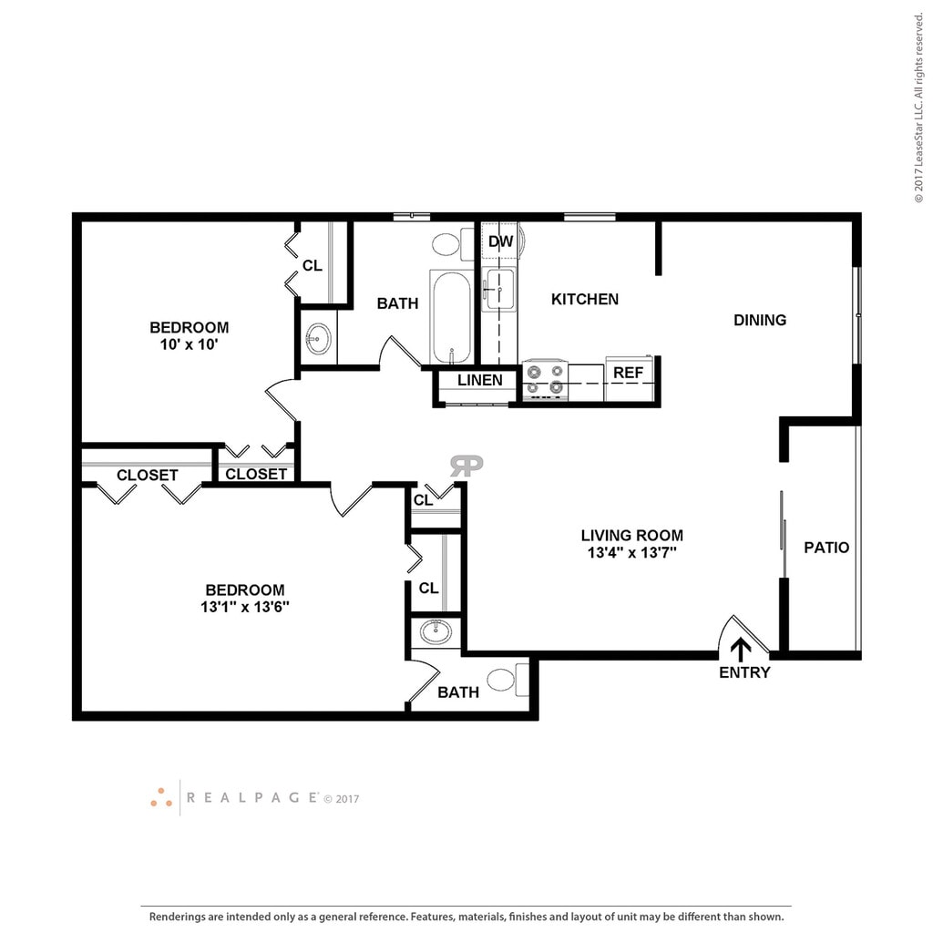 The Ashland - Plano 2 Los planos son representaciones artísticas. Todas las dimensiones son aproximadas. El producto y las especificaciones reales pueden variar en tamaño o detalle. No todas las características están disponibles en cada vivienda en alquiler. Por favor, consulta con un representante para obtener más detalles.