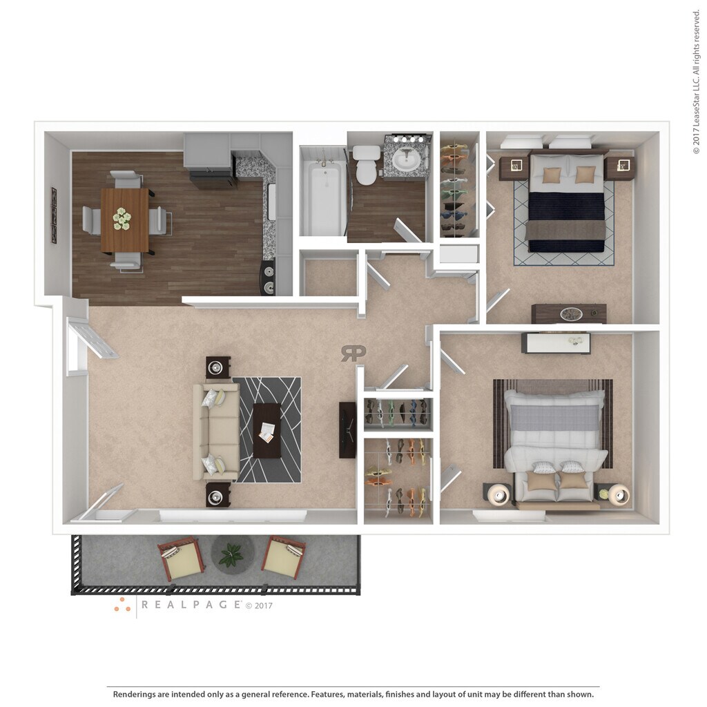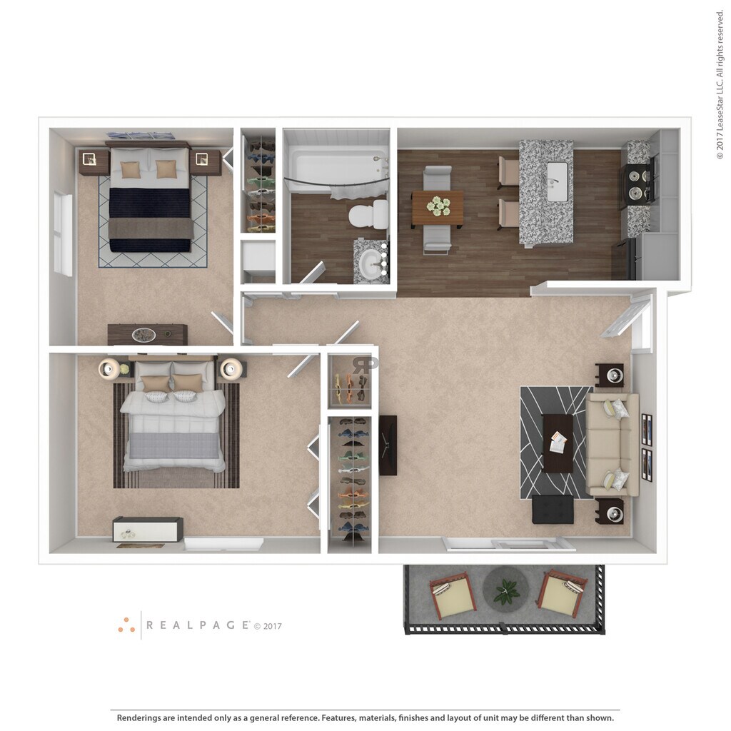 2 Dormitorios, 1 Baño, 860 pies²Precio Mensual TotalDisponible AhoraGalería del Modelo