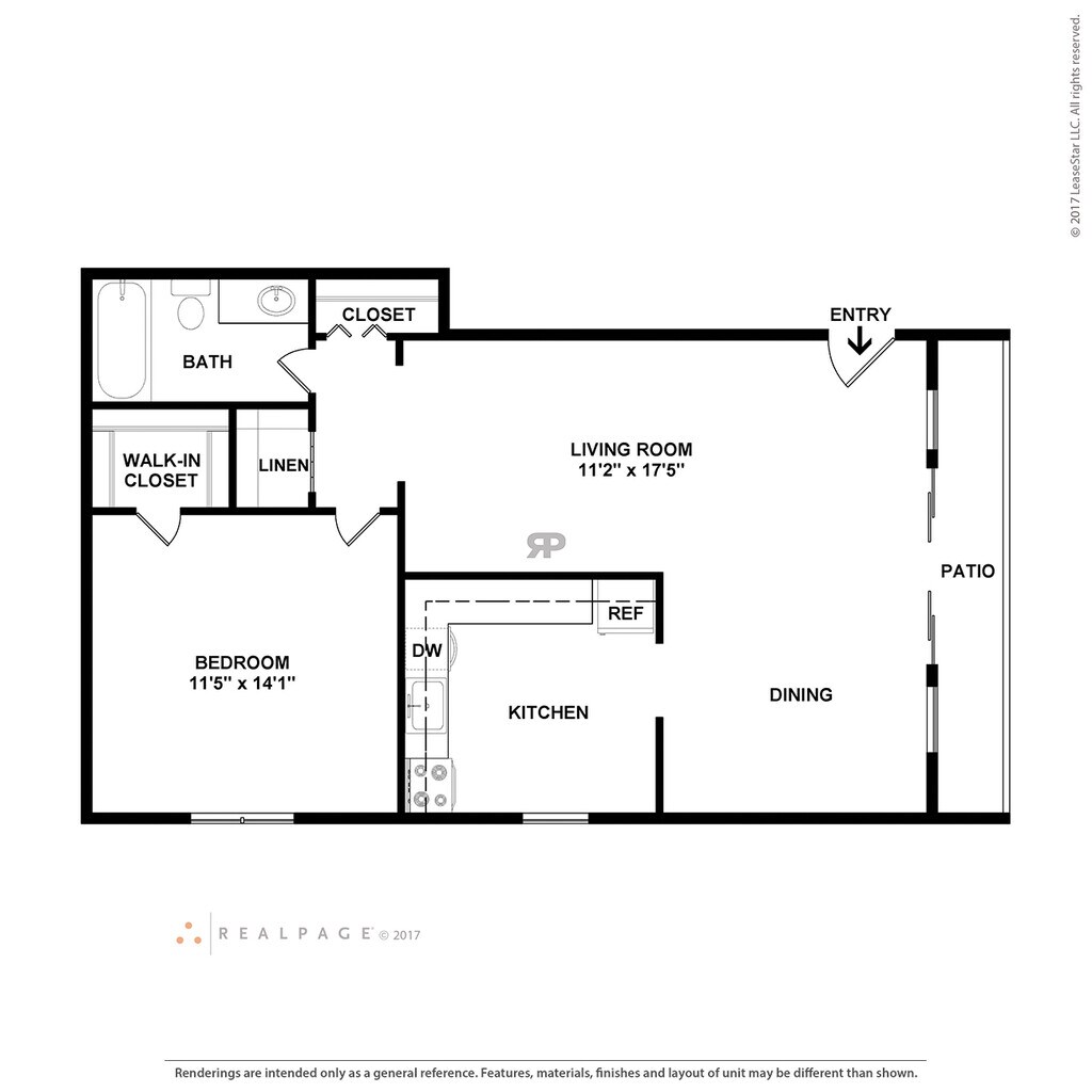 The Ashland - Plano 1 Los planos son representaciones artísticas. Todas las dimensiones son aproximadas. El producto y las especificaciones reales pueden variar en tamaño o detalle. No todas las características están disponibles en cada vivienda en alquiler. Por favor, consulta con un representante para obtener más detalles.