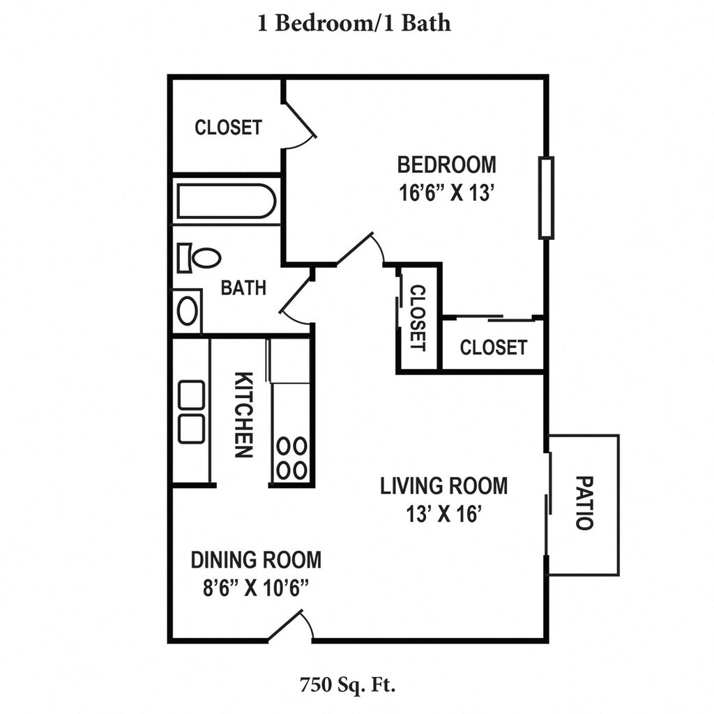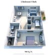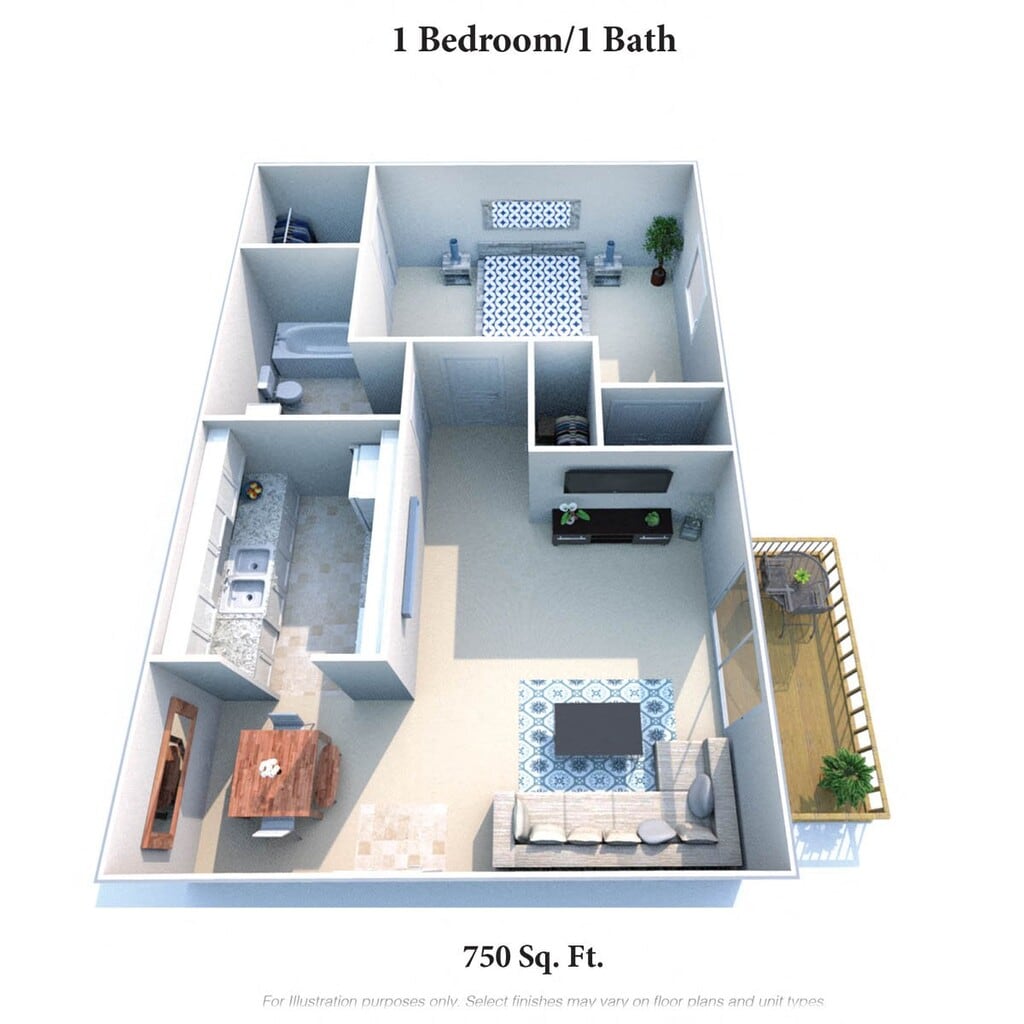 1 Dormitorio, 1 Baño, 750 pies²Disponible AhoraGalería del Modelo