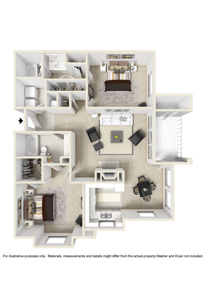 2 Dormitorios, 2 Baños, 1275 pies²Disponible February 8, 2026Galería del Modelo