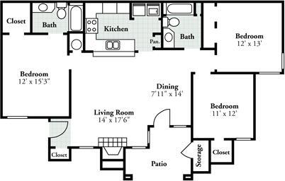 El rango de alquiler de Apartamentos 1 dormitorios a 3 dormitorios en Crowne Oaks Apartments van desde $1,420 a $1,660