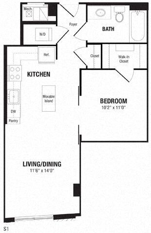 Studio, 1 Bath 531 SF S6