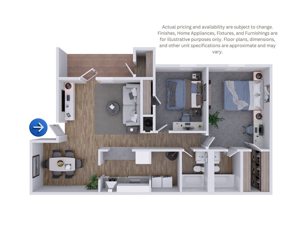 2 Dormitorios, 2 Baños, 960 pies²Disponible January 23, 2026Galería del Modelo