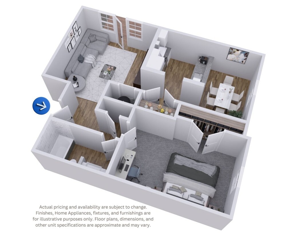 Modelo de apartamento: Chelsea | 1B1B$1,2421 Dormitorio, 1 Baño, 939 sq ftDisponible March 14, 2026PlanosFotos![]()