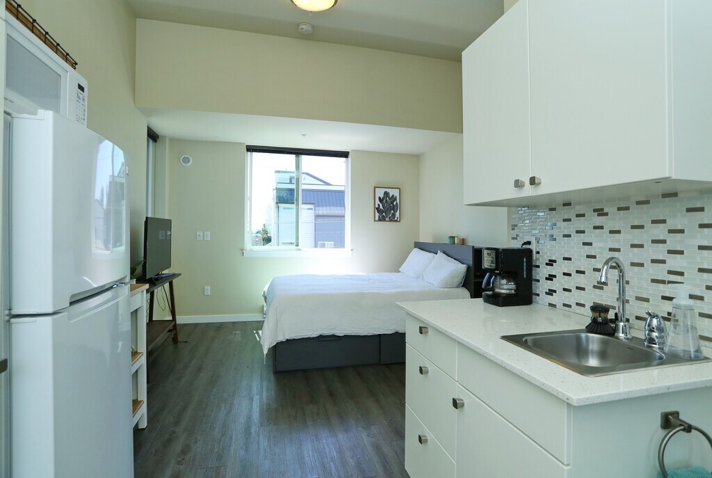¡Oferta especial de arrendamiento en abril! Cubix Micro Studios, servicios públicos + Internet incluido (Greenwood) - Incluye 1 mes de alquiler gratuito* Bienvenido a CUBIX: microestudios ultraeficientes, modernos y luminosos a minutos de Greenlake, Northgate y Ballard (918 N. 103rd St, Seattle). Este apartamento, ubicado en la planta baja, incluye un baño privado, cocineta, armario grande con espejos, refrigerador generoso, microondas, encimeras de cuarzo, despensa y gabinetes de almacenaje. Hay un espacio de cocina compartida disponible para todos los inquilinos equipada con un refrigerador común, un estufa y un horno de tamaño completo. Todos los servicios públicos, entre ellos, básico proporcionado WI-FI. Reducción de ruido de avanzada tecnología en todo el edificio para ayudar a garantizar la paz y la tranquilidad. Disfruta de la gran terraza en la azotea con vista de Cascades & Mt. Rainier. • Convenientemente ubicado cerca de tiendas, restaurantes y líneas de autobuses. Puntaje de caminata de 95 • Las fotos son representativas pero no necesariamente del apartamento real • No se admiten mascotas Visita la pestaña Vacancies en cubixapartments.com para obtener más información. *Primer mes completo de alquiler gratuito con un contrato de arrendamiento de 12 meses.
