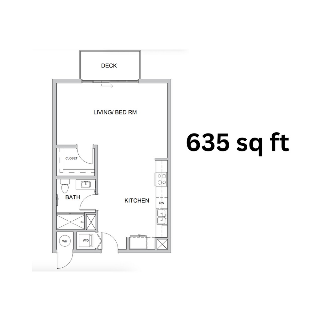 Estudio, 1 Baño, 635 pies²Disponible AhoraGalería del Modelo
