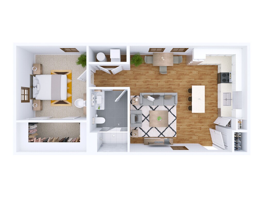 1 Dormitorio, 1 Baño, 664 pies²Disponible AhoraGalería del Modelo