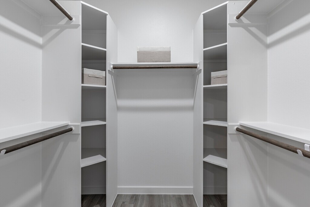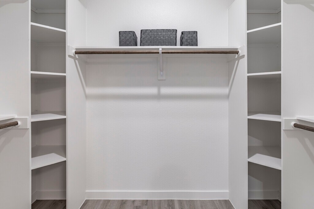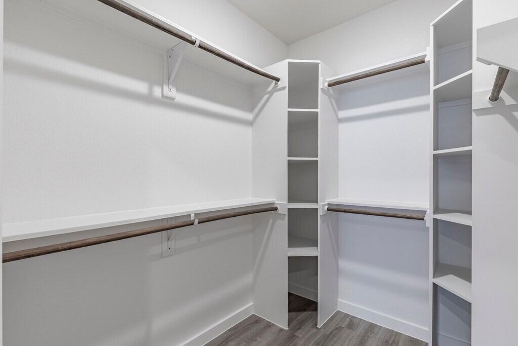 - Walk in Closets w/ Wood Shelves & Shoe Shelving