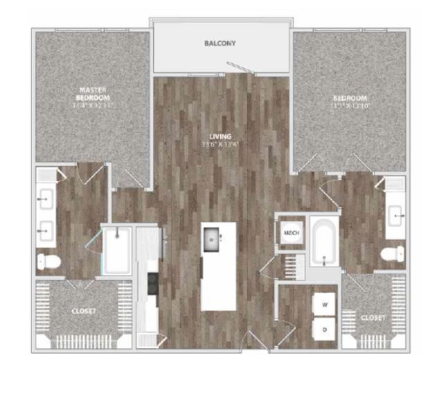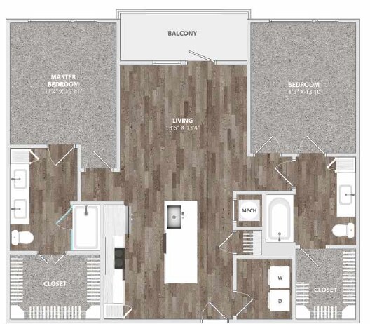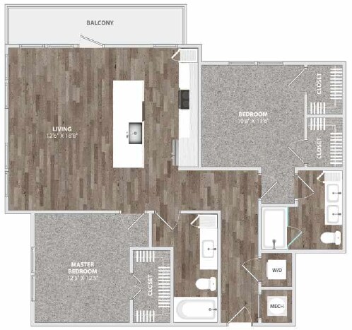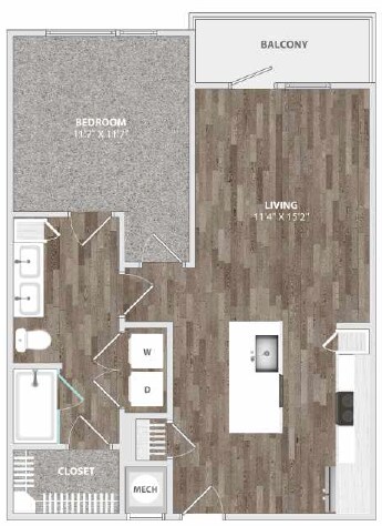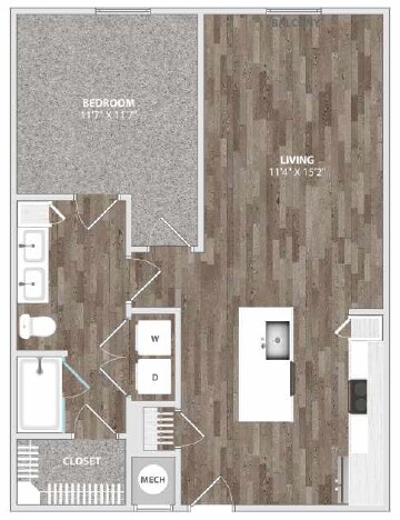 1 Dormitorio, 1 Baño, 730 pies²Disponible AhoraGalería del Modelo