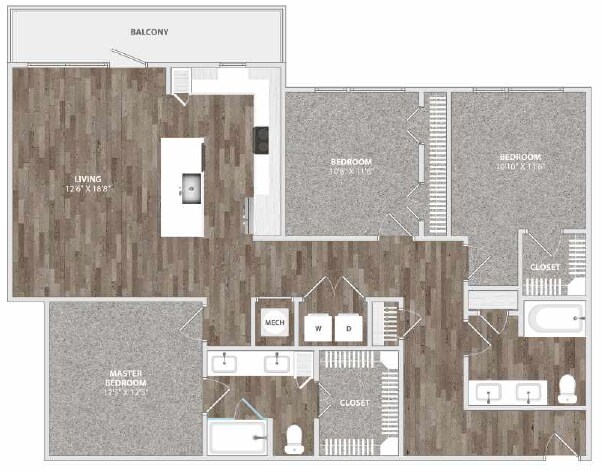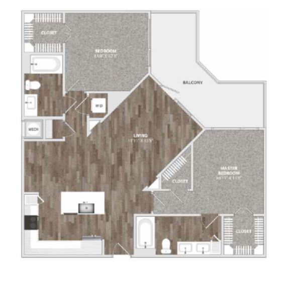 Modelo de apartamento: A2Desde $1,1101 Dormitorio, 1 Baño, 610 sq ftDisponible Ahora![]()
