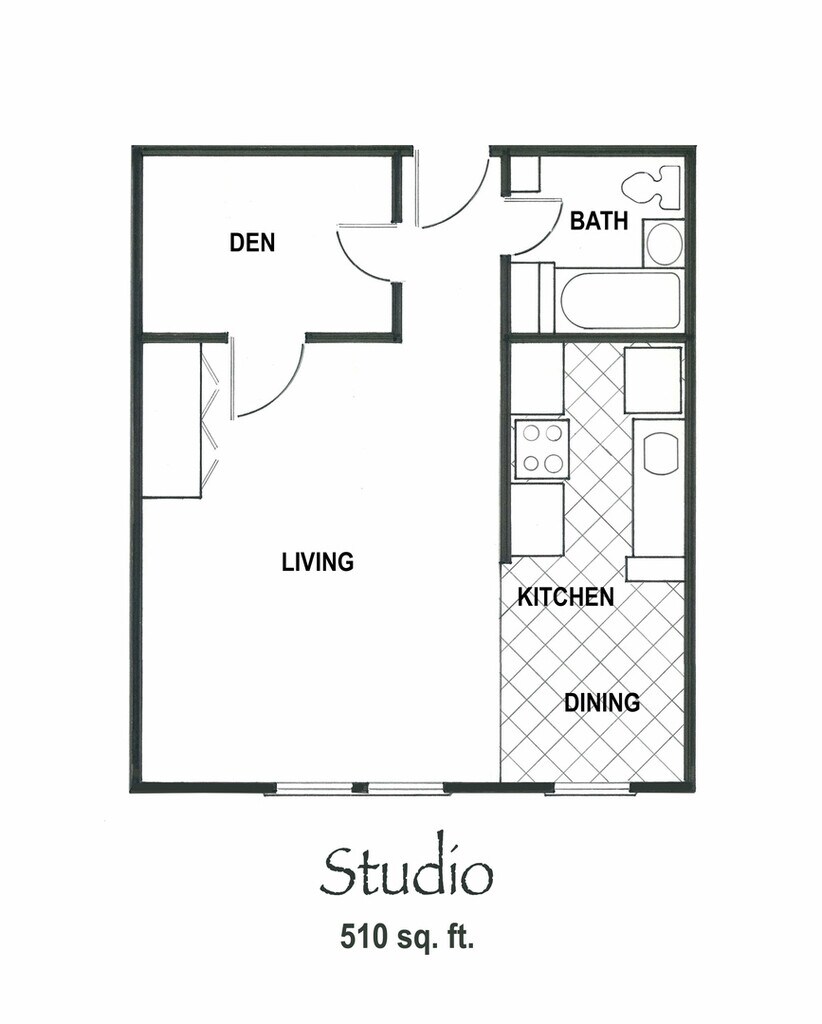 Unidad: 411 - Imagen 2 Unidad de apartamento: 412Modelo de apartamento: 0BR/1.0BAEstudio, 1 Baño, 510 sq ftDisponible Ahora![]()