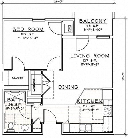 Modelo de apartamento: 2 Bedroom Unit2 Dormitorios, 1 Baño, 901 sq ftDisponible Ahora2 Bedroom Unit - Plano 1 Unidad de apartamento: 421Modelo de apartamento: 2 Bedroom Unit2 Dormitorios, 1 Baño, 901 sq ftDisponible Ahora