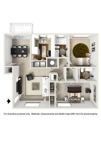 2 Dormitorios, 2 Baños, 1100 pies²Disponible AhoraGalería del Modelo