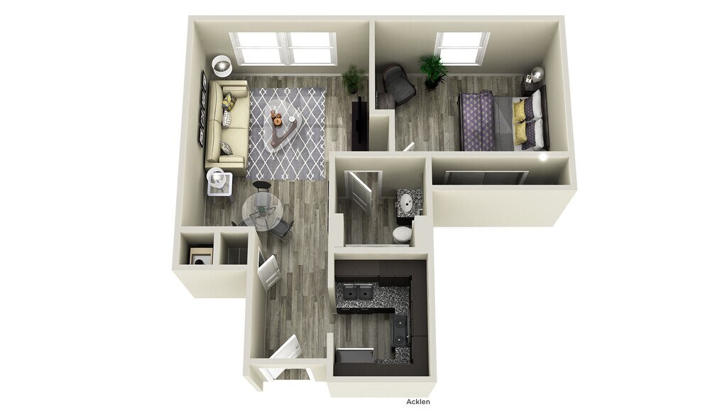 Modelo de apartamento: AcklenDesde $1,6121 Dormitorio, 1 Baño, 577 sq ftDisponible Ahora![]()