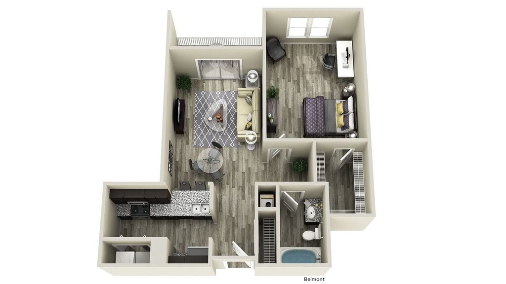 Modelo de apartamento: BelmontDesde $1,4801 Dormitorio, 1 Baño, 774 sq ftDisponible Ahora![]()