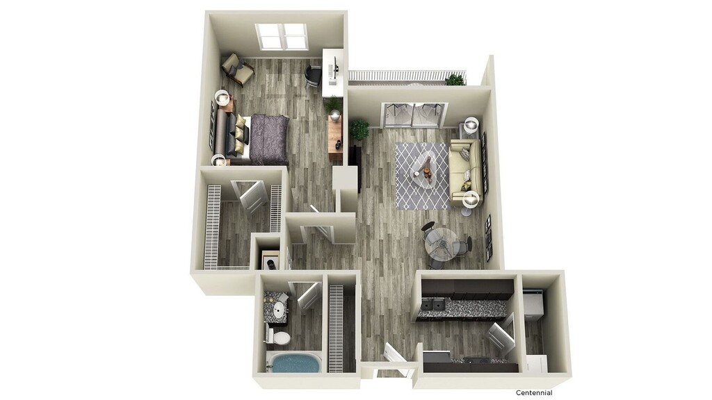 Modelo de apartamento: CentennialDesde $1,6731 Dormitorio, 1 Baño, 783 sq ftDisponible Ahora![]()